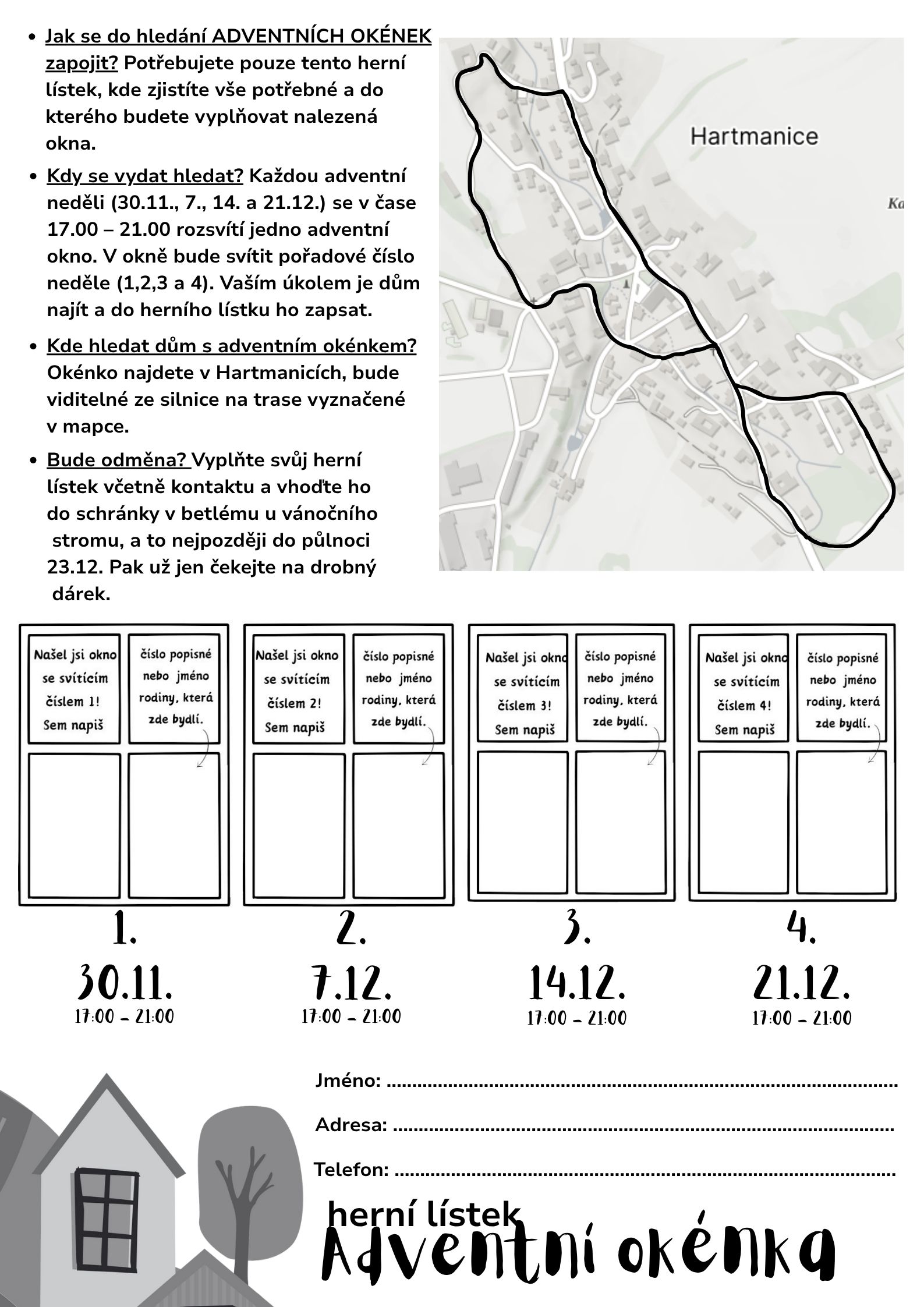 Zúčastněte se s námi v neděle 30.11., 7., 14. a 21.12.2024 předvánoční hry "Adventní okénka" ! |