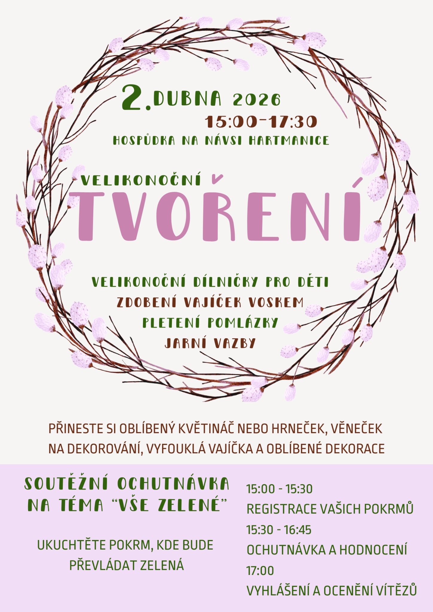 VE ČTVRTEK, 2. dubna od 15:00-17:30 se v Hospůdce Na Návsi koná tradiční velikonoční tvoření. | plakát zde |